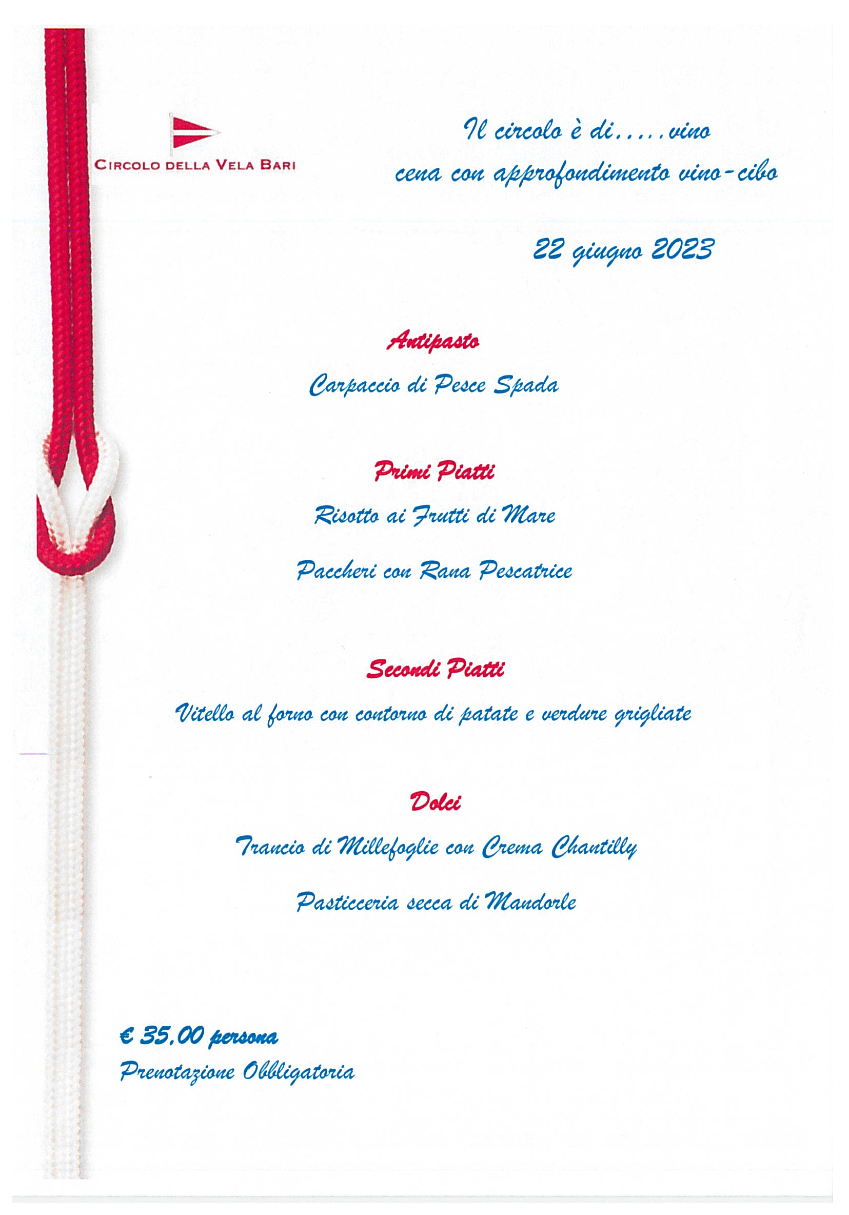I vini selezionati sono gentilmente offerti da alcuni produttori Soci del Circolo, con il commento enogastronomico della Sommelier A.I.S. BARI TERESA LASTILLA.